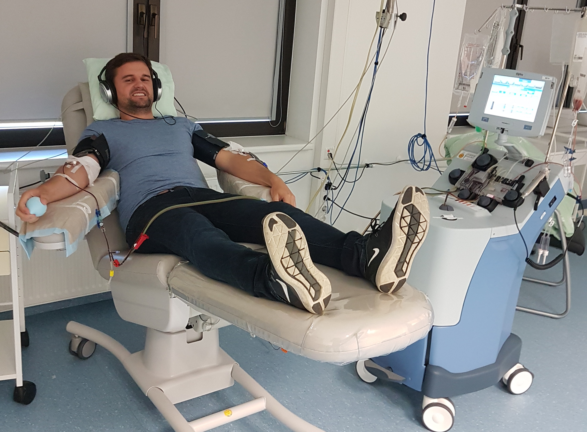 Bild: Unser 133. Lebensretter Stefan bei der Stammzellspende - Download Foto