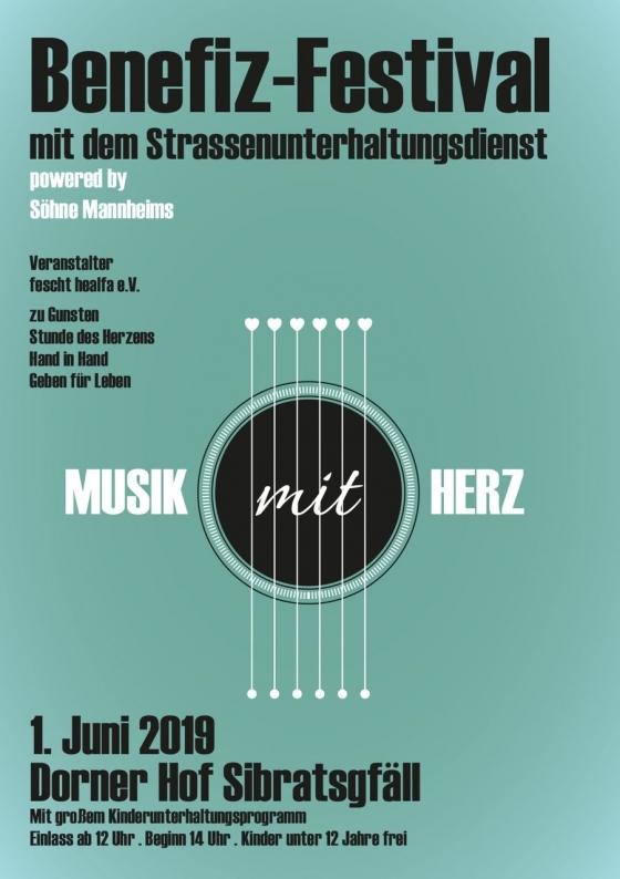 Markus und August Dorner aus Sibratsgfäll organisieren das große Benefiz-Festival. Die Söhne Mannheims kommen am 1. Juni nach Sibratsgfäll und spielen für den guten Zweck. Sie werden auch Freunde mitbringen, die als Überraschungsgäste auftreten werden. An diesem Tag erwarten Euch ein vorzügliches Catering, ein tolles Kinderprogramm am Nachmittag und eine Mega-Show bis in die Nacht hinein. Die Karten sind auf dem Gelände begrenzt, daher sichert Euch am besten gleich welche.