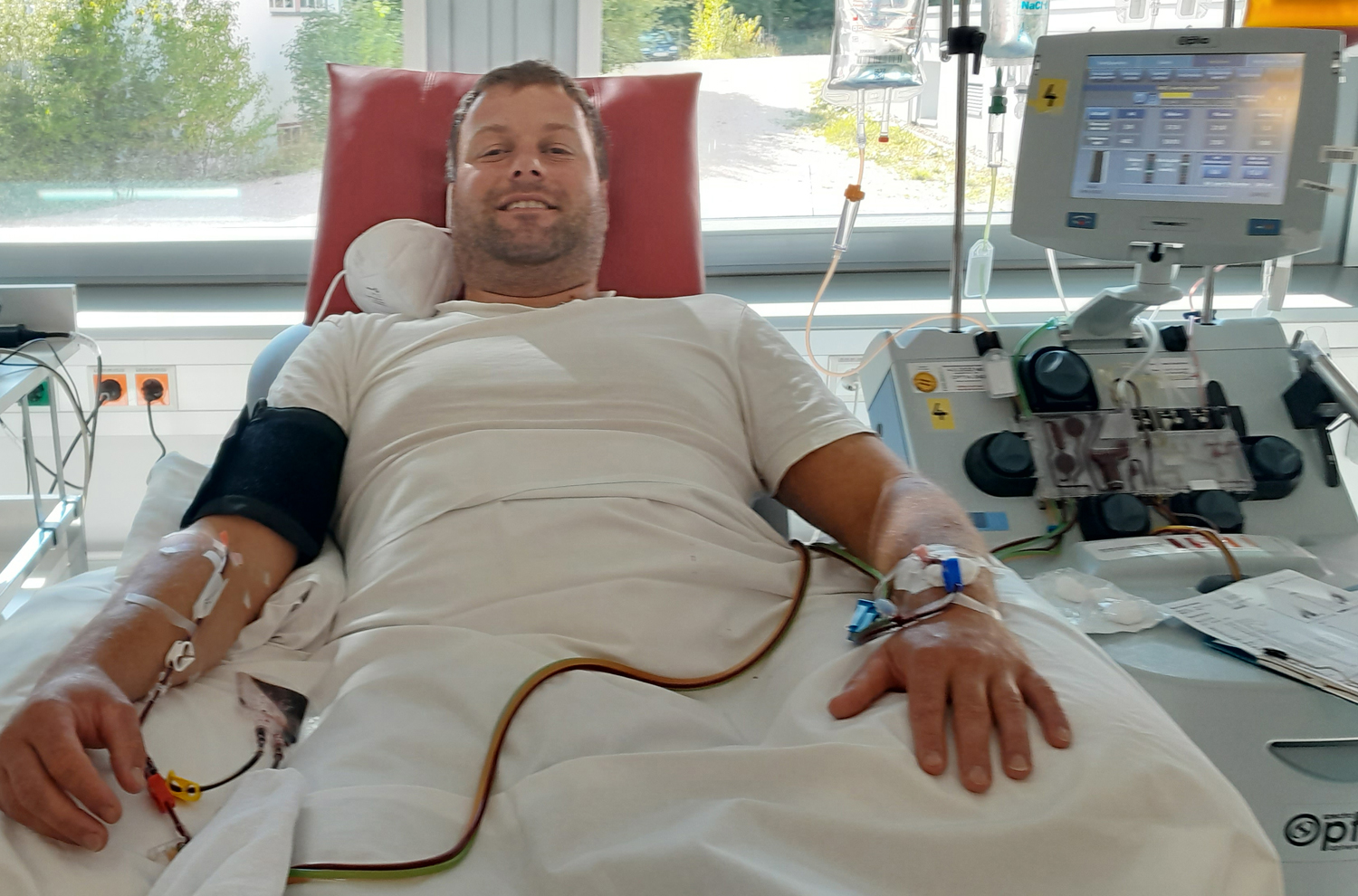 Nachdem die Spende zweimal aufgrund medizinischer Gründe verschoben wurde, war der dritte Anlauf in Ulm mehr als erfolgreich. Sein Körper produzierte so viele Stammzellen, dass es für zwei Spenden reichen würde.