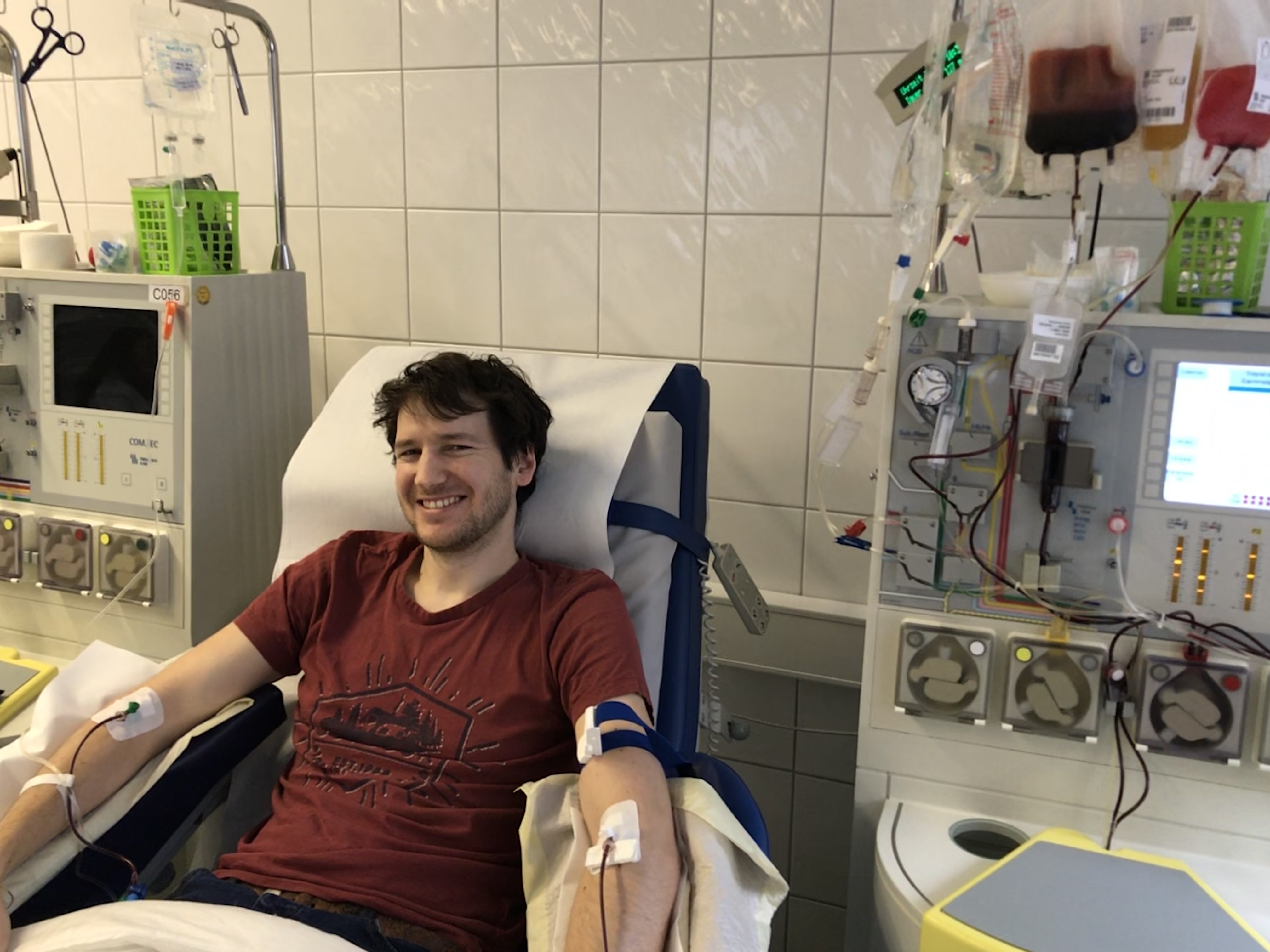 Bild: Unser 157. Lebensretter Benjamin bei der Stammzellspende - Download Foto