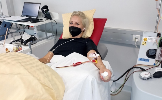 Bild: Kerstin bei ihrer Stammzellspende - Download Foto