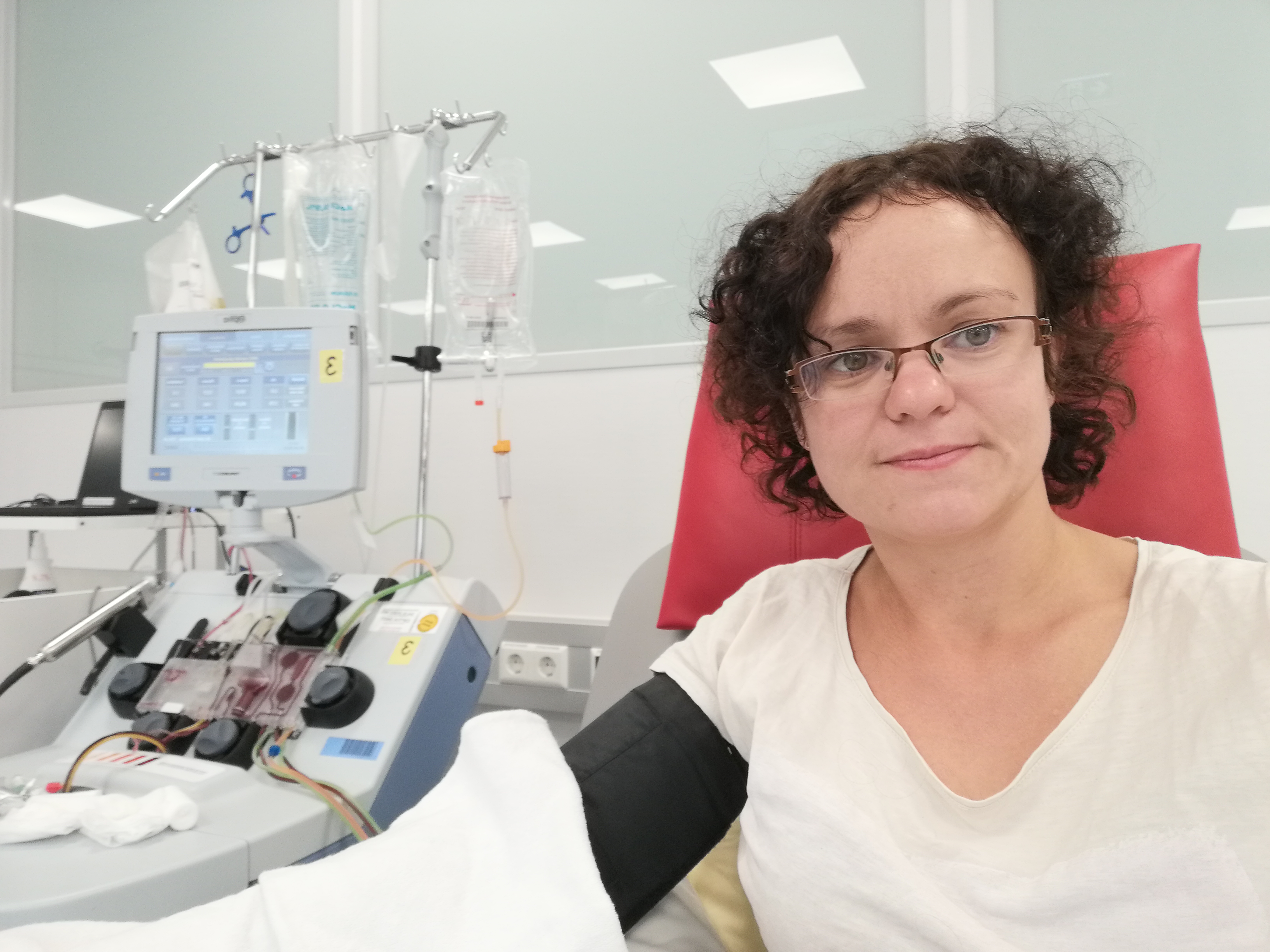 Bild: Unsere Spenderin Stephanie bei der Stammzellspende - Download Foto