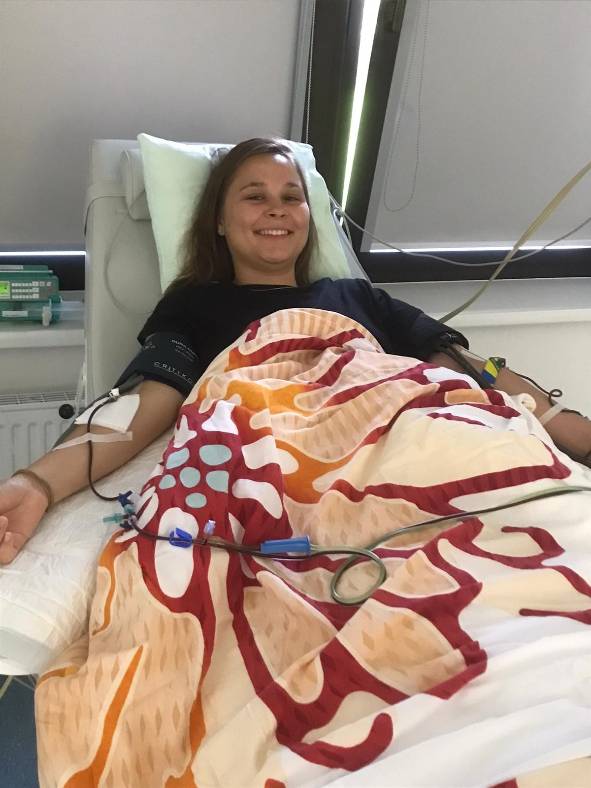 Bild: Unsere 272. Lebensretterin Julia bei der Stammzellspende - Download Foto
