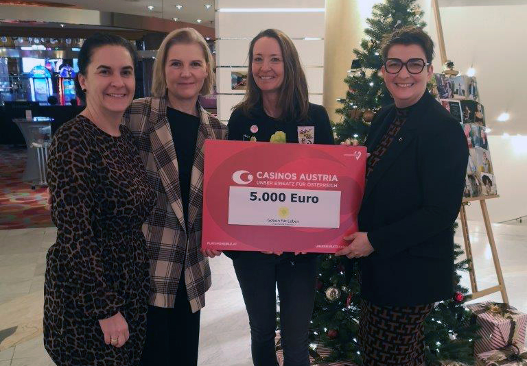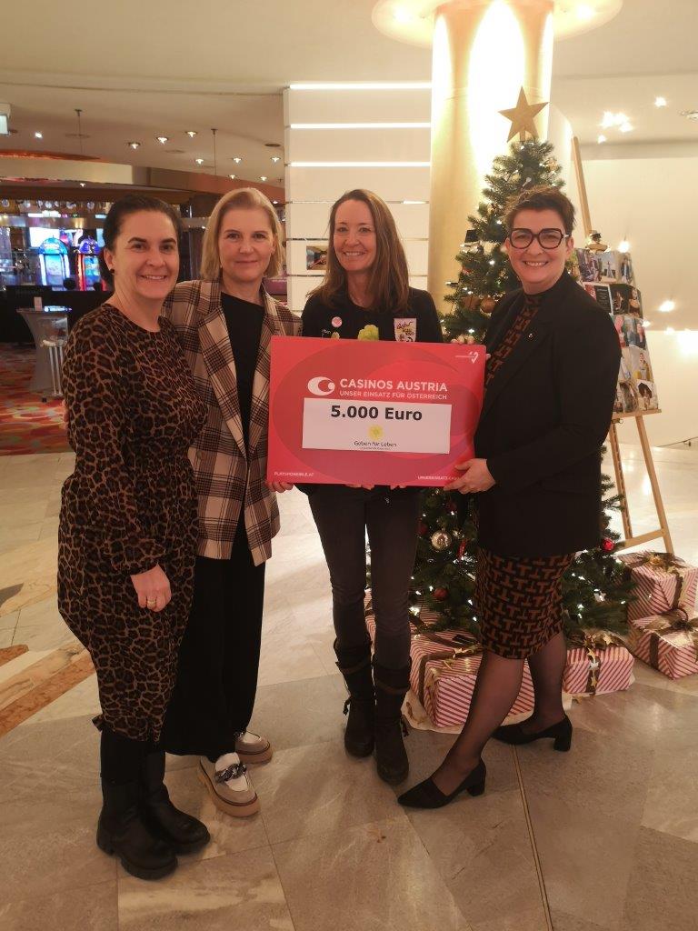 Im Rahmen der Initiative ,,Unser Einsatz für Österreich", die unter anderem auf dem Corporate Volunteering der Mitarbeiter:innen von Casinos Austria basiert, durfte das Casino Velden die Organisation ,,Geben für Leben" unterstützen. Ein Sponsoringbetrag von € 5.000 konnte an die Leukämiehilfe Österreich übergeben werden. Das gesamte Team des Casino Velden bedankt sich für die gute Zusammenarbeit und wünscht weiterhin viel Erfolg bei der Suche nach Spender:innen sowie potenziellen Lebensretter:innen.
