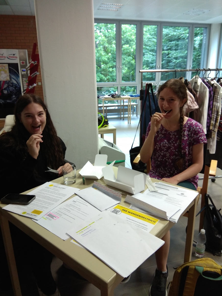 Bild: Drei engagierte BORGler bei der Typisierung – Download Foto