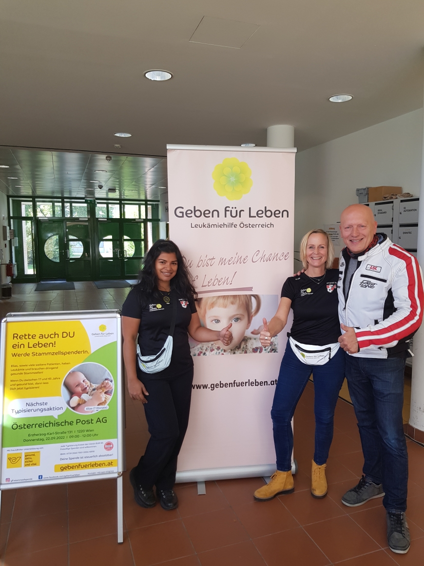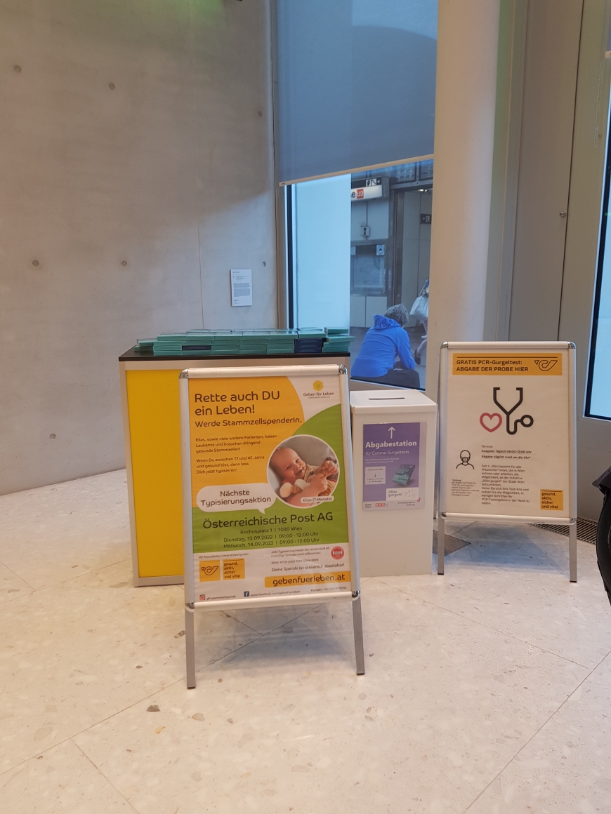 Mitte bis Ende September hatten die MitarbeiterInnen der Österreichischen Post AG an drei Tagen und zwei unterschiedlichen Standorten (1030, 1220) in Wien die Möglichkeit, sich als StammzellspenderIn typisieren zu lassen.