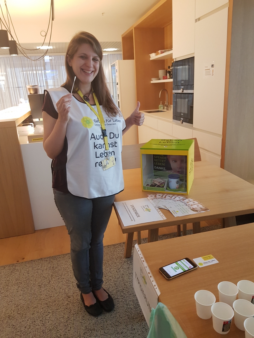 Da es nun die Möglichkeit gibt, seine persönlichen Daten über das Handy zu registrieren, nimmt es nur wenige Minuten in Anspruch, mittels eines einfachen Wangenabstrichs in der Datenbank aufgenommen zu werden. 68 MitarbeiterInnen ließen sich typisieren! Vielleicht ist jemand von ihnen der lebensrettende genetische Zwilling für einen schwerkranken Menschen.