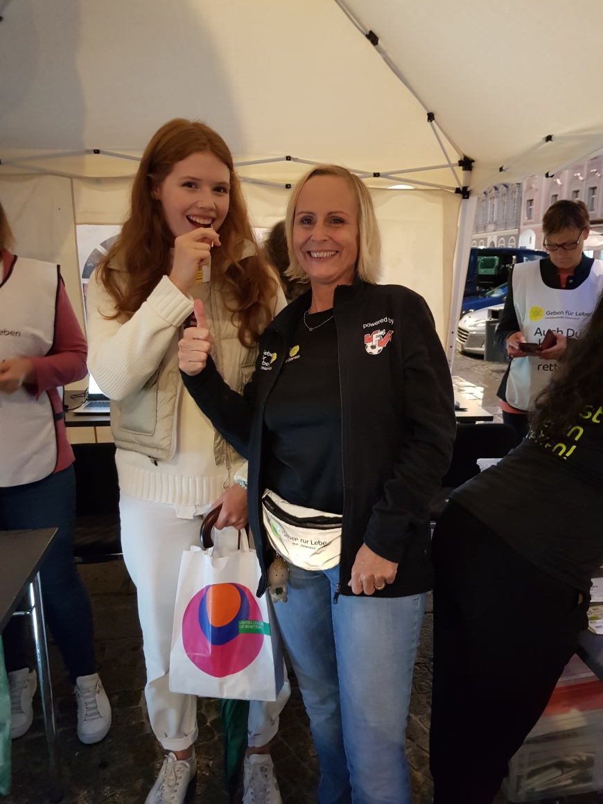 Bei Regen und beschwingter Musik ließen sich so 111 Menschen als Lebensretter in der Spenderdatei aufnehmen! Vielen Dank an Simone und an alle freiwilligen Helfer- und SpenderInnen!