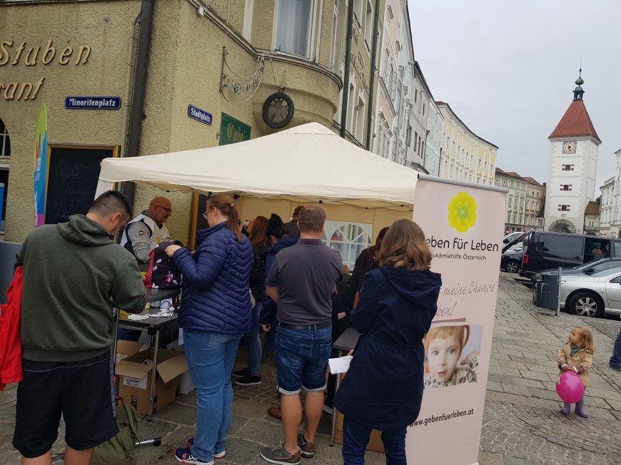 Simone Lindinger, die Obfrau der Band, ließ es sich nicht nehmen, spontan während der Shopping Night Wels bei einem Konzert eine Typisierungsaktion ins Leben zu rufen. Anni Söllradl, Marlene Schmidinger-Mostegl und Bianca Nestinger vom Ladies Circle Wels informierten die BesucherInnen auf dem Minoritenplatz unermüdlich über die Möglichkeit, sich als Stammzellspender typisieren zu lassen. Durch sie erfuhren viele Menschen quasi "im Vorbeigehen“ von unserer Suche und waren sofort bereit, uns zu unterstützen! Auch Elias' Mutter Melina war vor Ort.