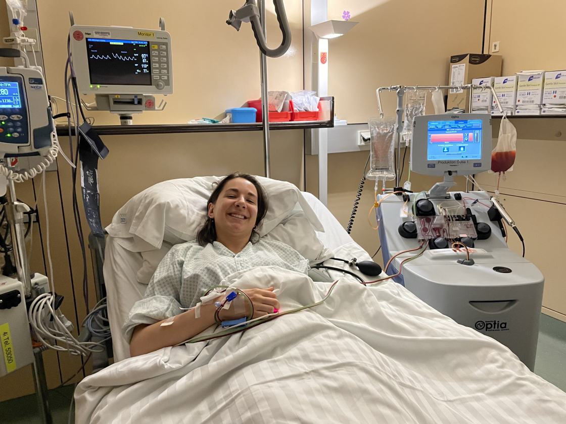 Foto: Hannah (24) aus Linz bei ihrer Stammzellspende – Download Foto