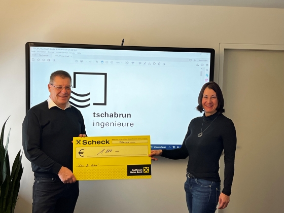 Bild: Gerhard Tschabrun und Susanne Marosch bei der Scheckübergabe – Download Foto.