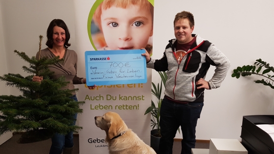 Bild: Susanne Marosch und Ingo Vaschauner bei der Scheckübergabe (überwacht von Happy) – Download Foto