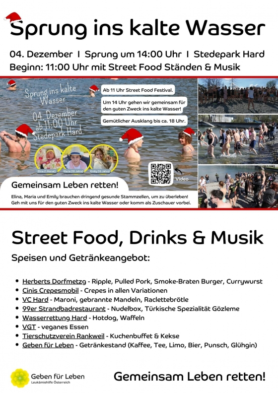 Im Harder Stedepark werden Foodtrucks und Cateringstände mit Bänken aufgestellt, wo bei feiner Musik das Leben gefeiert wird. Um 14 Uhr geht das Team dann – begleitet von seinen hoffentlich zahlreichen UnterstützerInnen – ins kalte Wasser.