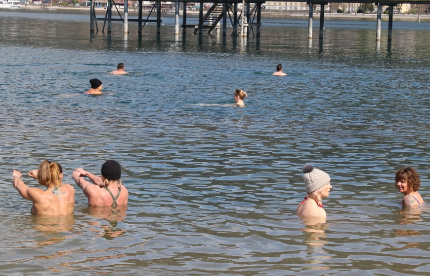Um 14:00 Uhr Sprung ins Wasser (begleitet von professionellen Atemübungen nach Wim Hof)